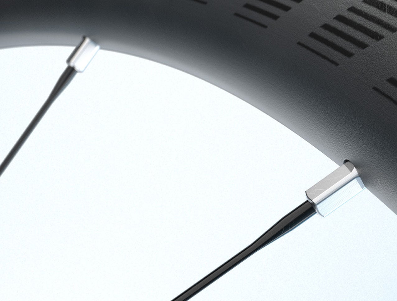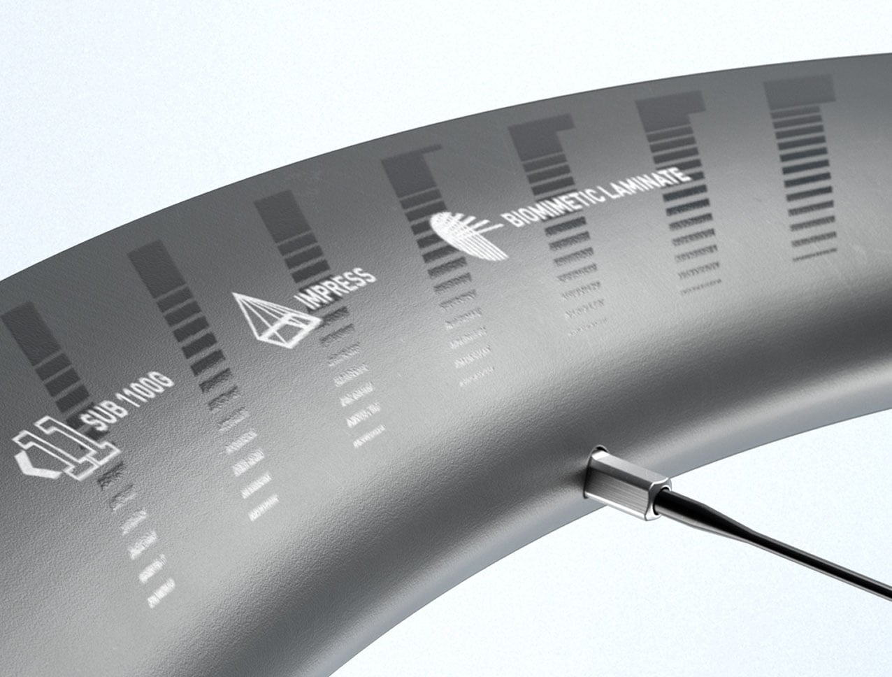Biomimetic mixed-modulus carbon layups function like muscle tendons to reinforce stiffness at the spoke bed, and toughness at the tire bead for maximum strength and durability.