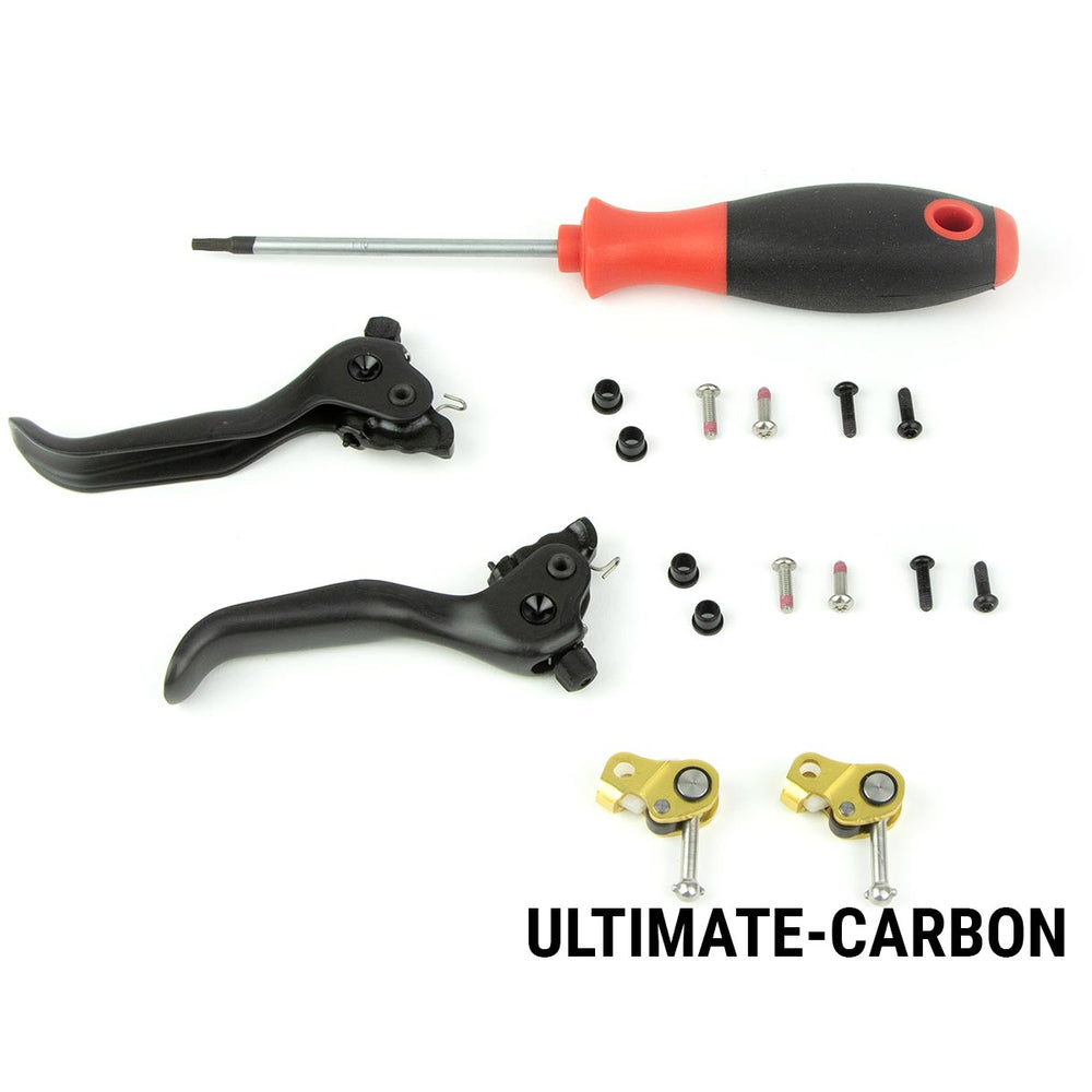 Each kit includes the redesigned SwingLink (known as B1) plus your choice of carbon or aluminum levers. Image shown is box set for Ultimate and Silver, the Bronze kit does not include box/driver.